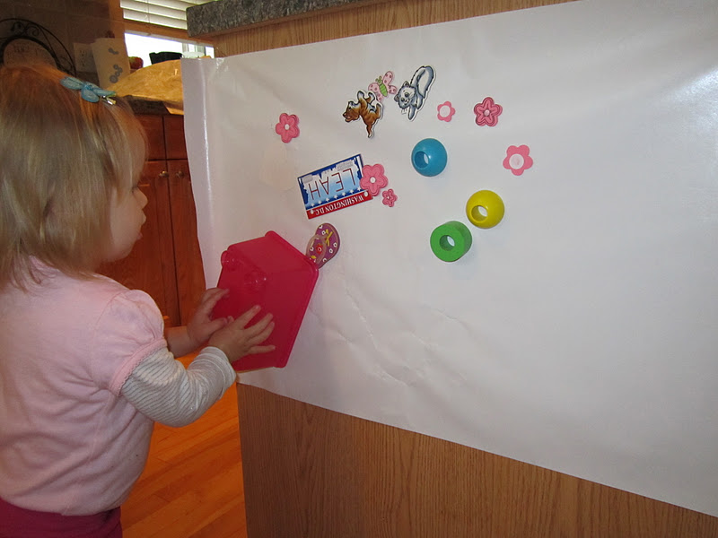 | I used small blocks, magnets, and some little cardboard shapes that I had from a previous project. |